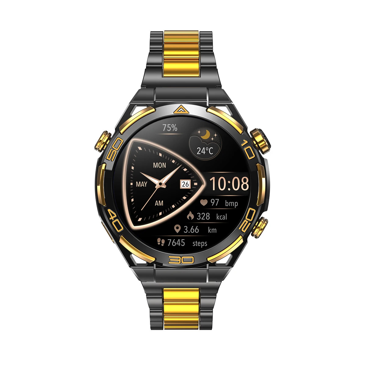 Material: Premium Zinc Alloy Body + 304 Stainless Steel Band with 14K Gold Plating