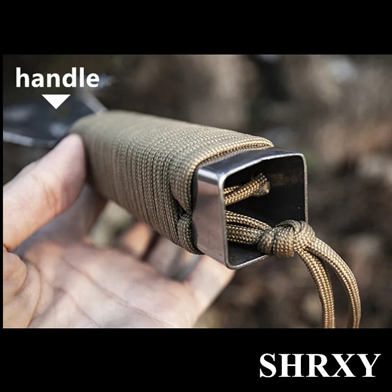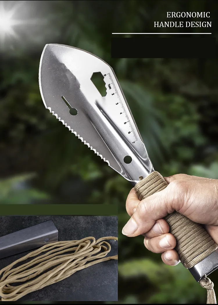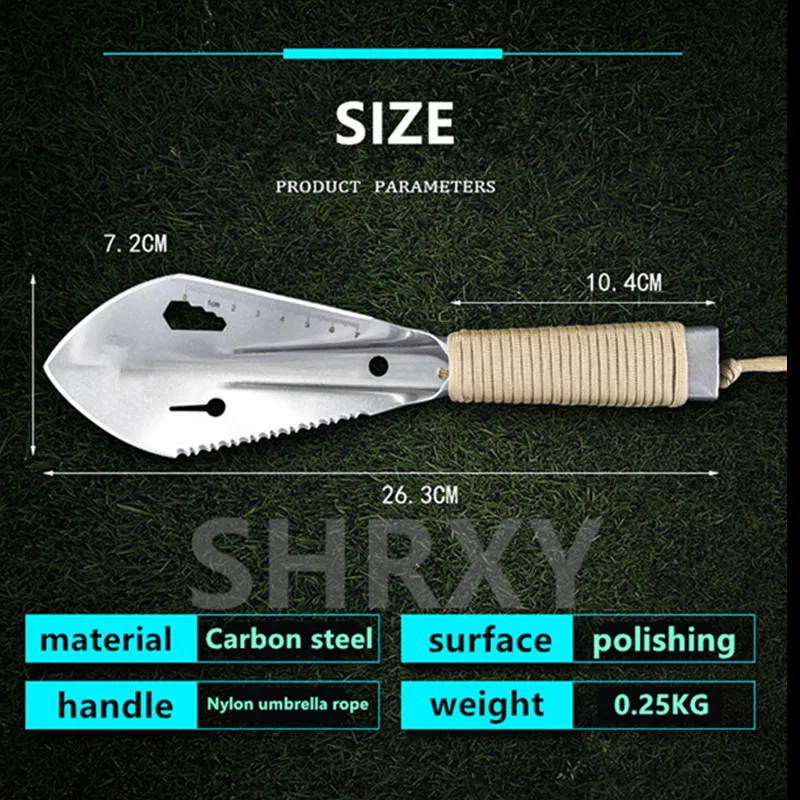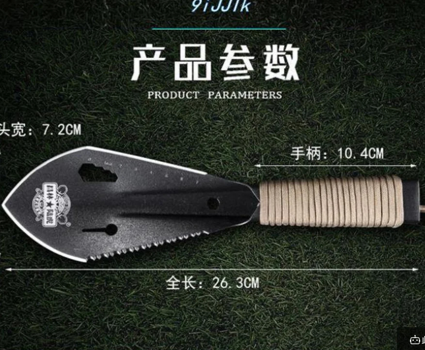 4.Special carbon steel material with various functions, sawing, cutting, cutting, shovel, wrench, nail, ruler, protective spear, up to 8 kinds, umbrella handle can be used for binding, integrated design, Avoid breaking.