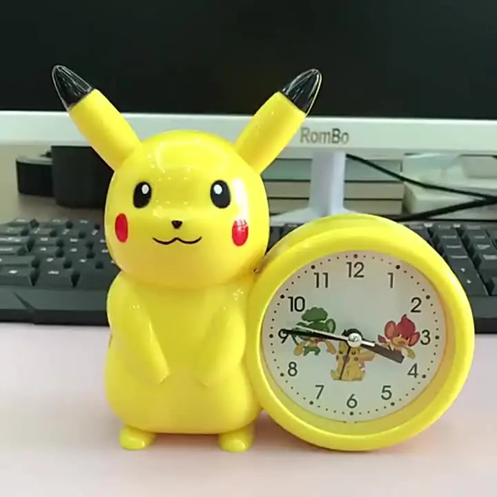 New Genuine Pokemon Anime Pikachu Catoon Kawaii Model Action Decoration Toy Children Alarm Pointer Clock Student Kids Gift